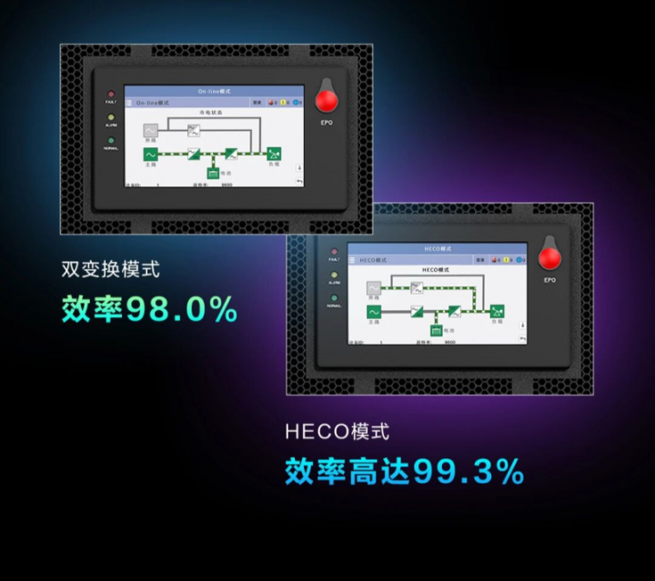 98.0%双变换模式效率,99.3%高效节能HECO模式效率,以极致电能效率,无惧电网波动,稳定支撑AI智算极限负载。